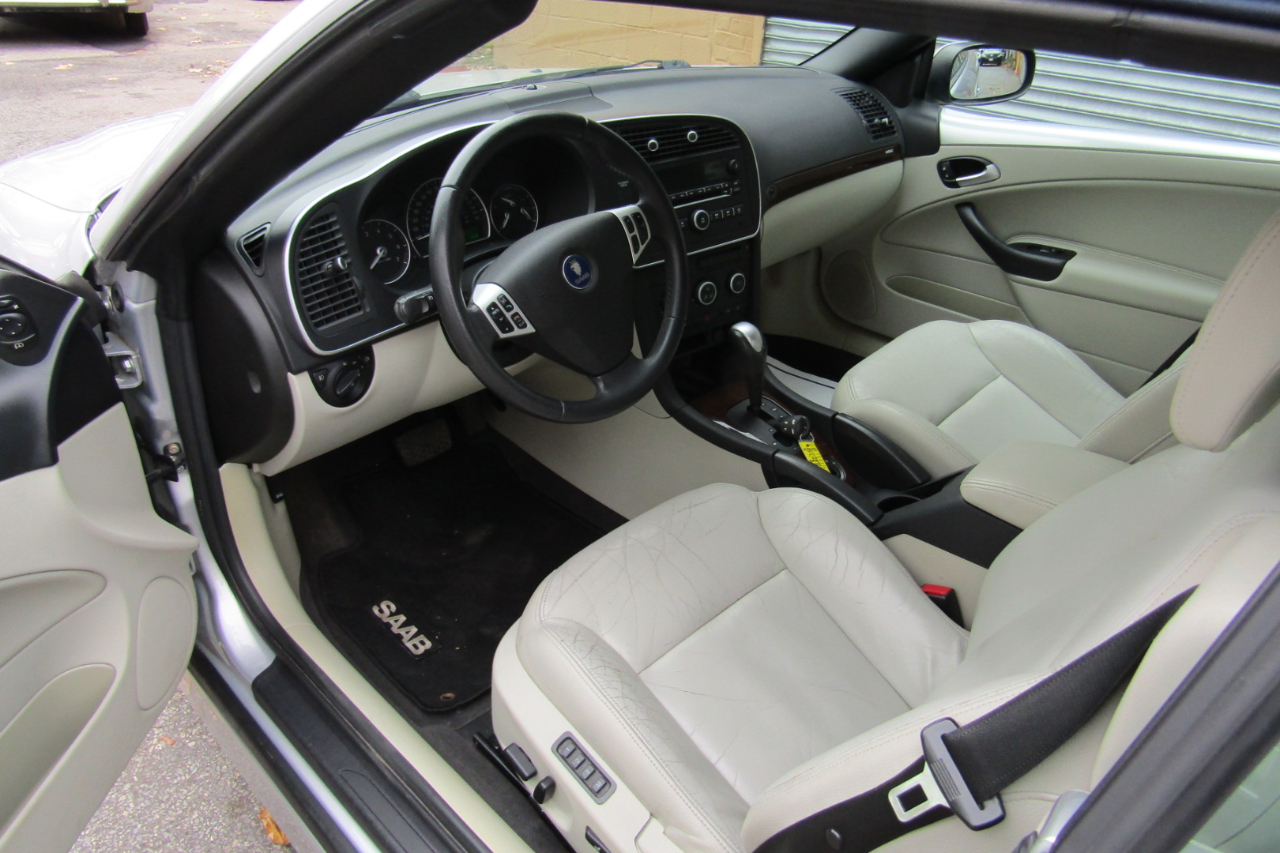 2007 Saab 9-3 2.0T TOURING Convertible in outstanding condition. The car has a CARFAX clean title guarantee. Vehicle qualifies for low interest rate Credit Union Financing. Highly Optioned, Fully serviced, well maintained Rust Free vehicle with available records. We specialize in Saabs/Volvos. Vehicle went thru a very thorough full service and reconditioning at our shop including Synthetic Oil Change, Air and Cabin Filters, Wheel Alignment, Spark Plugs, Ignition Coils, Thermostat, Coolant Temp Sensor, Ionization Module, among other items. All Gadgets operate properly. Vehicle drives and handles perfect with no issues. No Warning lites, Engine codes or Dash Messages. All our vehicles are tested, serviced and if needed repaired to the maximum before sale. I personally test every vehicle btw 100-300 miles, sometimes even more. Silver Metallic exterior in outstanding condition with no dents or scratches. Beige Leather interior in great condition. Equipped with a 2.0L Turbocharged I4 DOHC 16V FI Engine, 5-Speed Automatic Transmission, Burl Walnut Interior Trim, TOURING Package – XENON Headlights, Front Foglights, Driver’s MEMORY Settings, Rear PARKING Sensors, DUAL Power Seats; 16 Inch Alloy Wheels, Blue Power Convertible Top, HEATED Seats, AM/FM/CD/SAT Audio System; Power Heated Mirrors, Keyless Entry System, Immobilizer, Trip Computer, Stability Control, Rear Foglight; Traction Control, 4-Wheel ABS, Driver and Passenger Airbags, Front and Rear Head Airbags, Front Side Airbags, Anti-Theft Alarm System, Audio Steering Wheel Controls, Cruise Control, Tilt and Telescopic Steering Wheel, Leather Shift Knob Trim, Leather Steering Wheel Trim, Intermittent Windshield Wipers, Power Windows, Power Door Locks, Daytime Running Lights, Mechanically perfect. Nationwide delivery can be arranged. For more pictures click here>> 2007 Saab 9-3 pictures