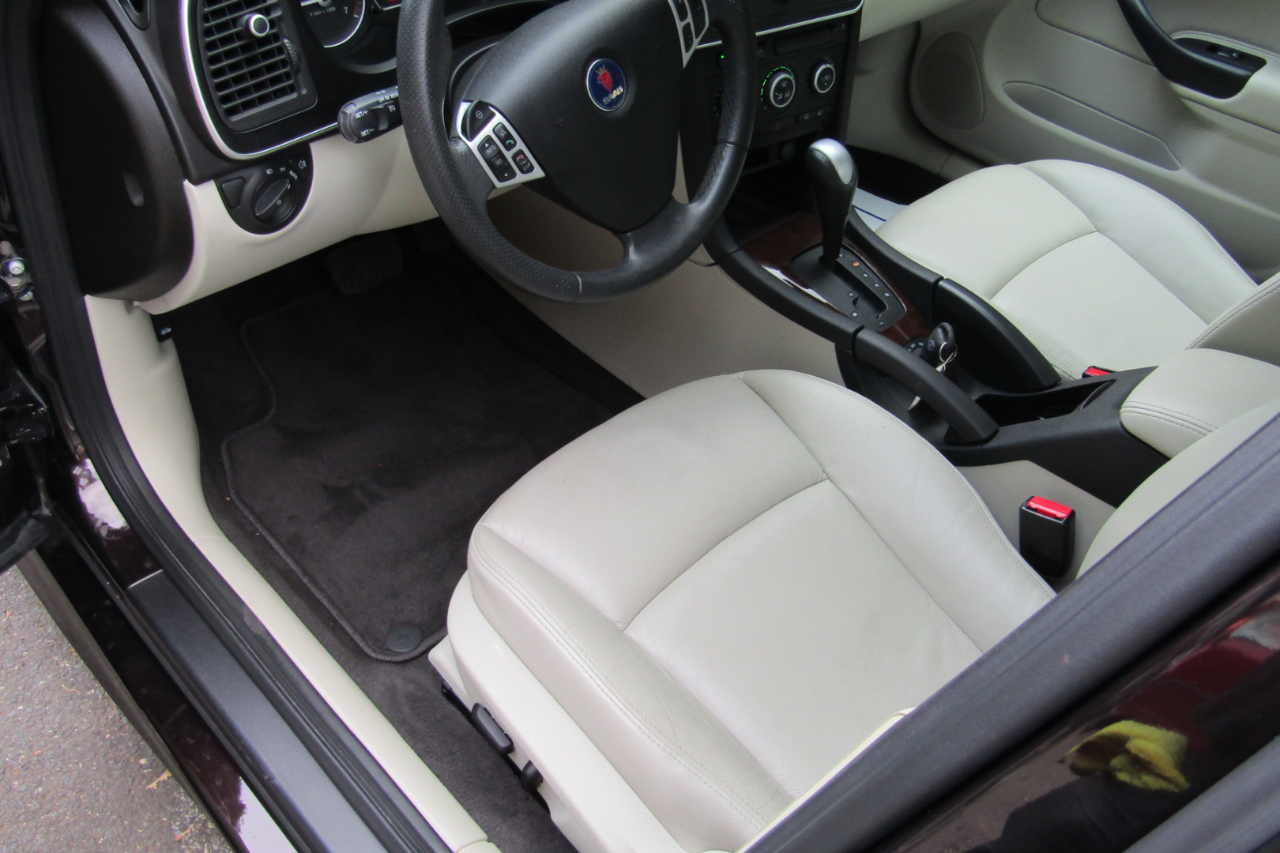 2011 Saab 9-3 2.0T Turbo4 Sedan in like new condition. The car has a CARFAX clean title guarantee. Vehicle qualifies for low interest rate Credit Union Financing. ONE Owner California Vehicle. One of 97 produced for US market for this model year in this color and configuration. We specialize in Saabs/Volvos. Maintenance Service was just completed by our shop. We specialize in Saabs/Volvos. Our service included Synthetic Oil Change, New Cabin and Air Filters, Battery, Stabilizer Links. All Gadgets operate properly, No Warning lites or Dash Messages. Vehicle drives and handles perfect with no issues. All our vehicles are tested, serviced and if needed repaired to the maximum before sale. I personally test every vehicle btw 100-300 miles, sometimes even more. Java exterior in outstanding condition with no dents or scratches. Beige leather interior in outstanding condition with no wear to mention. Equipped with a 2.0L Turbocharged I4 DOHC 16V FI Engine, 5-Speed AUTOMATIC Transmission, Leather Bucket Seats, Power Heated Mirrors, HEATED Seats, Power MOONROOF, Keyless Entry System, Bluetooth AM/FM/CD Audio System with 7 Speakers, 16 Inch Alloy Wheels, Dual Front Power Seats, Clock, Immobilizer, Tachometer, Trip Computer, Stability Control, Traction Control, 4-Wheel ABS, Driver and Passenger Airbags, Front and Rear Head Airbags, Front Side Airbags, Anti-Theft Alarm System, Leather Seats, Rear Bench Seat, Rear Split Bench Seat, Audio Steering Wheel Controls, Rear Fog light, Cruise Control, Remote Trunk Release, Tilt and Telescopic Steering Wheel, Leather Shift Knob Trim, Leather Steering Wheel Trim, Intermittent Windshield Wipers, Power Windows, Power Door Locks, Daytime Running Lights, Great tires, Mechanically perfect. Nationwide delivery can be arranged. For more pictures click here>> 2011 Saab 9-3 pictures